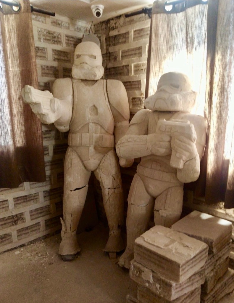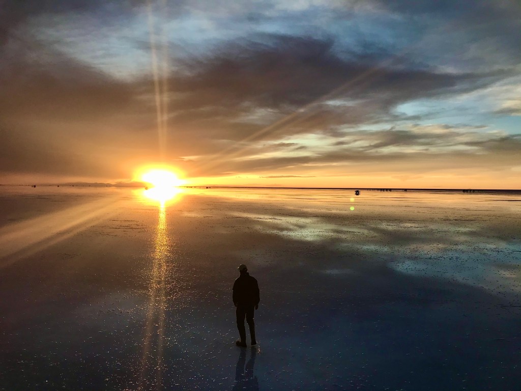Vietimme pari päivää Salar de Uyunissa, joka on maailman suurin suola-aavikko. Pinta-ala on 12 000 neliökilometriä ja siellä on 10 miljardia tonnia suolaa. Suola-aavikko kuulemma näkyy avaruudesta samalla tapaa kuin Kiinan muuri. Iso se on! Nukuimme yön yhdessä seudun suolaharkoista rakennetuista hotelleista. Seinät olivat suolaa, aulan istuinryhmät olivat suolasta samoin kaikki koriste-esineet, jopa Star Wars hahmot oli veistetty suolasta. Meidän piti ihan nuolaista hotellin seinää varmistaaksemme, että se oli suolainen. Oli se.
