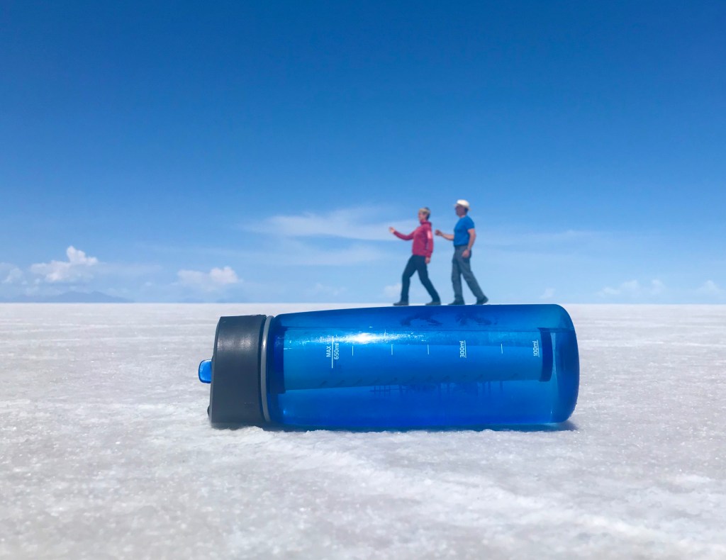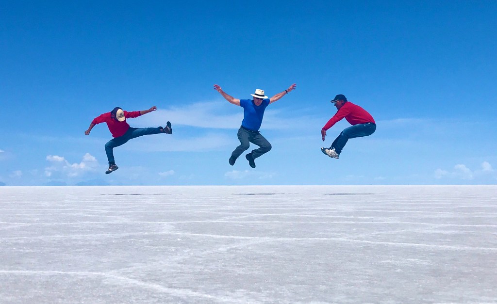 Paikallisilla on lupa ”louhia” suolaa ja muokata sitä myyntikuntoon ruoanlaitossa käytettäväksi. Turismi on kuitenkin tottakai suurin bisnes. Mekin ihan hullaannuimme ottamaan mitä kummallisimpia valokuvia, joissa leikitellään perspektiivillä. Mietimme, että onnistuisikohan sama merenjäällä, jos vain meret taas joskus jäätyisivät.